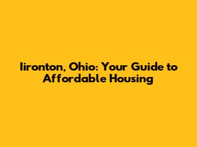 Iironton, Ohio: Your Guide To Affordable Housing